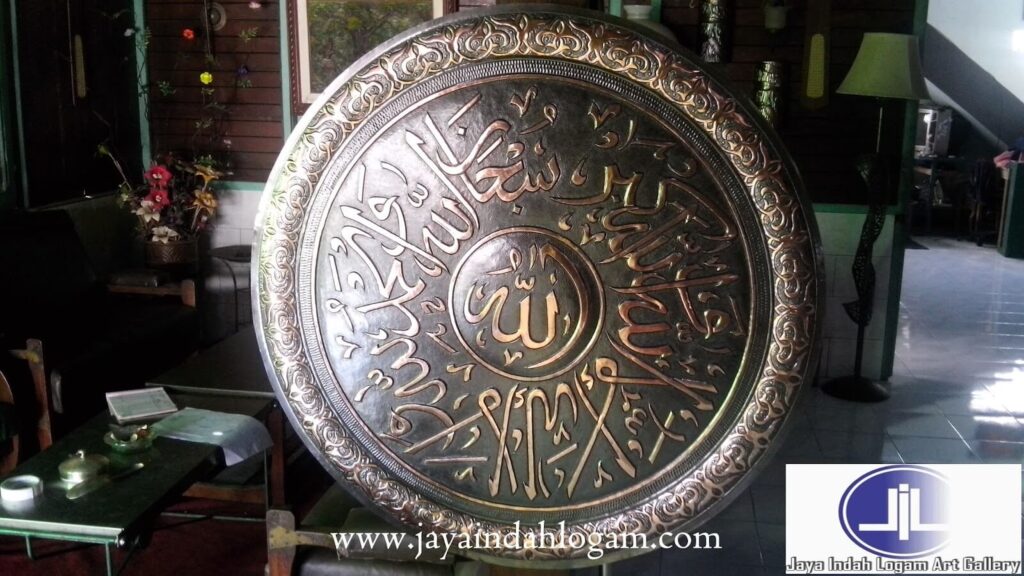 Ukiran logam dengan motif kaligrafi Arab memiliki makna sebagai bentuk ekspresi spiritual dan keagamaan. Digunakan untuk memperkuat kesan sacral di masjid, musola, maupun rumah. Ukiran kaligrafi ini biasanya dipadukan dengan ornamen geometris dan floral.